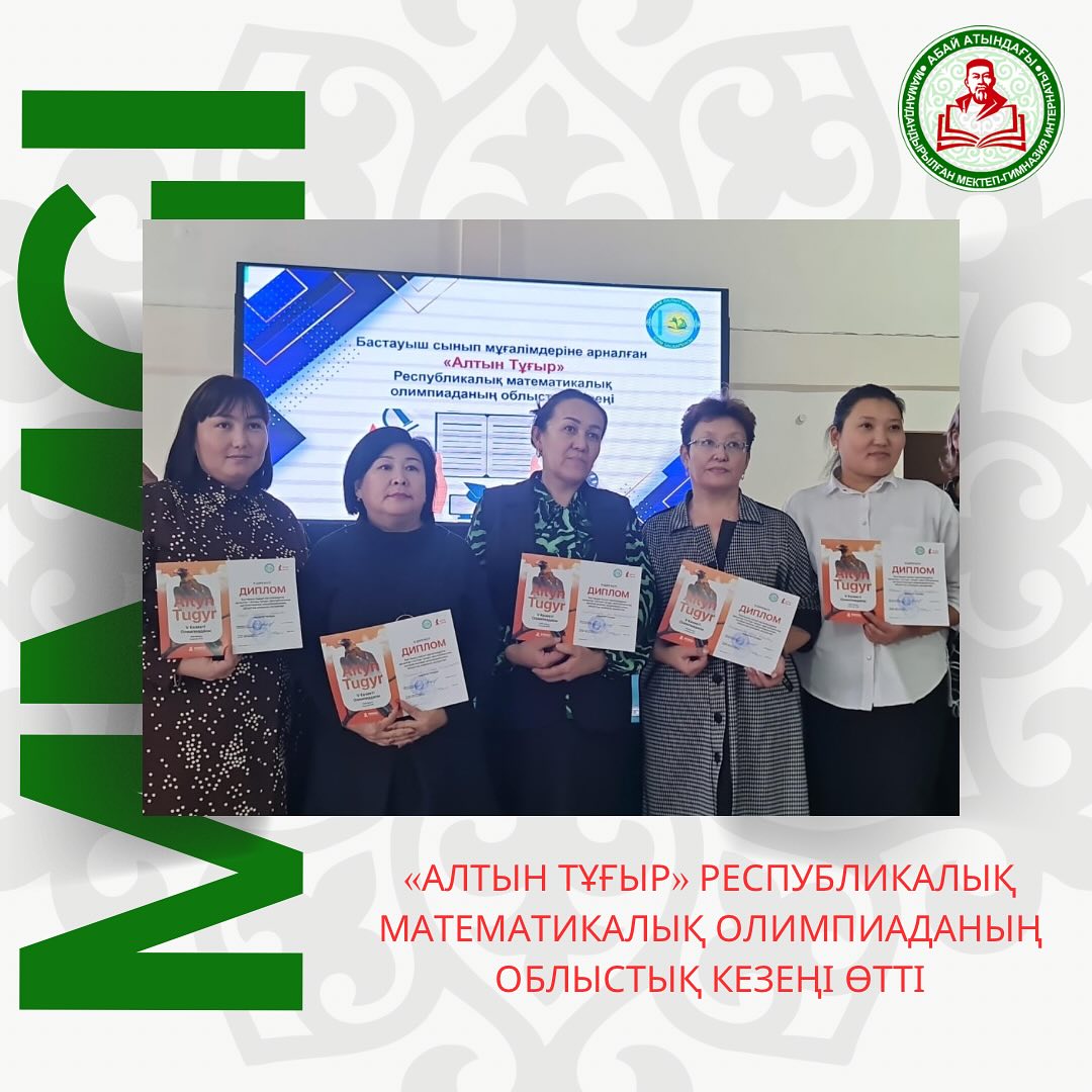 11 қаңтар 2024 0 1 2 3 4 5 «АЛТЫН ТҰҒЫР» РЕСПУБЛИКАЛЫҚ МАТЕМАТИКАЛЫҚ ОЛИМПИАДАНЫҢ ОБЛЫСТЫҚ КЕЗЕҢІ ЖЕҢІМПАЗДАРЫ ⚡️«АЛТЫН ТҰҒЫР» РЕСПУБЛИКАЛЫҚ МАТЕМАТИКАЛЫҚ ОЛИМПИАДАНЫҢ ОБЛЫСТЫҚ КЕЗЕҢІ ӨТТІ⚪️Бастауыш сынып мұғалімдеріне арналған математикалық олимпиада өтті. Олимпиада мақсаты - бастауыш сынып мұғалімдерінің кәсіби қызметінде жоғары нәтижелерге жетуге ұмтылысын жетілдіру, шығармашылық әлеуеті мен педагогикалық шеберлігін дамыту, мұғалім мамандығының мәртебесін арттыру.✅Облыстық кезеңге 9 ауданнан 80 жүлдегер педагог іріктеліп алынды.📌Республикалық олимпиаданың облыстық кезеңіне мектебіміздің бастауыш сынып мұғалімі КУДАЙБЕРГЕНОВА САЯ КАЙЫРЛЫГАЗИНОВНА қатысып, жүлделі 🥉 орын иеленді.Құттықтаймыз👏🏻👏🏻👏🏻