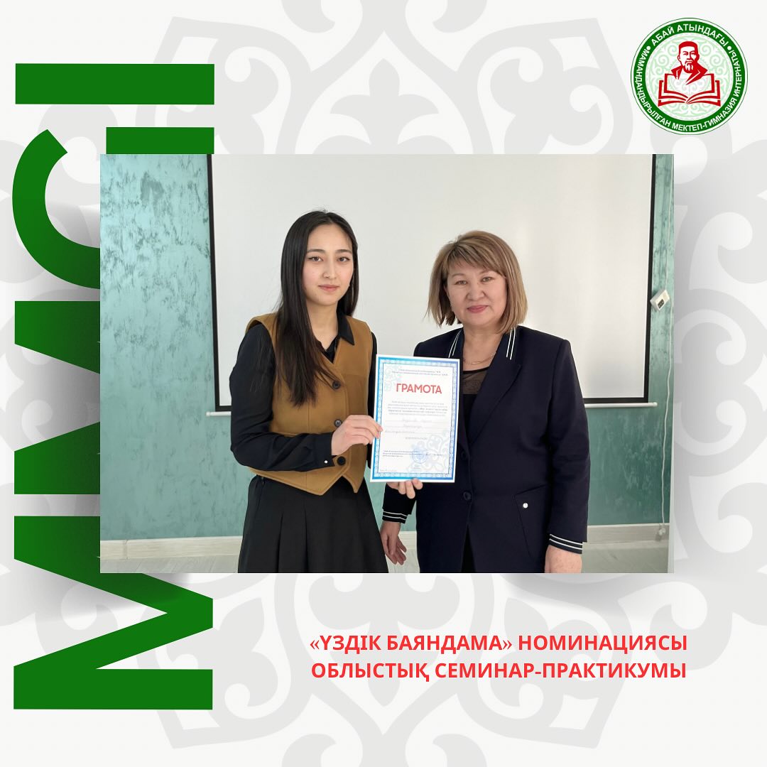 🔸Мектебіміздің жас маман, математика пәнінің мұғалімі МӘДЕНОВА МАДИНА НҰРБЕКҚЫЗЫ қатысып, “Үздік баяндама” номинациясымен марапатталды.