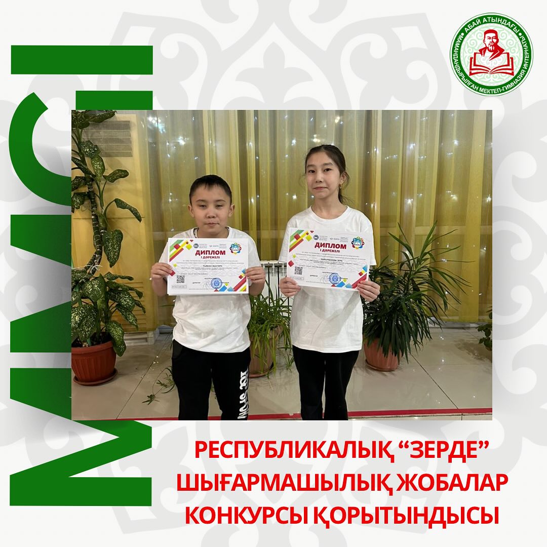 🔰2024 жылдың 30 қаңтары мен 1 ақпан аралығында Щучинск қаласының «Щучинский» шипажайында ХІХ «Зерде» республикалық 2-7 сынып оқушылары арасында зерттеу жобалары мен шығармашылық жұмыстары конкурсының қоғамдық-гуманитарлық бағыты бойынша жарыс өтті.📌Республикалық-қорытынды кезеңнің ең үздігі атану үшін Қазақстанның барлық облыстарынан, Астана, Алматы және Шымкент қалаларынан 303 жұмыспен 368 қатысушы бәсекеге түсті.