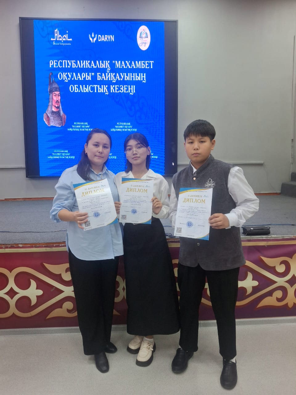 Республикалық «Махамбет оқуларының» облыстық кезеңінде мектебіміздің дарынды оқушылары топ жарды.