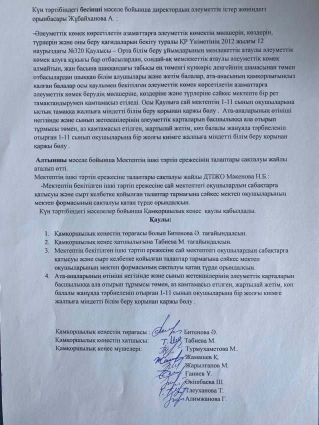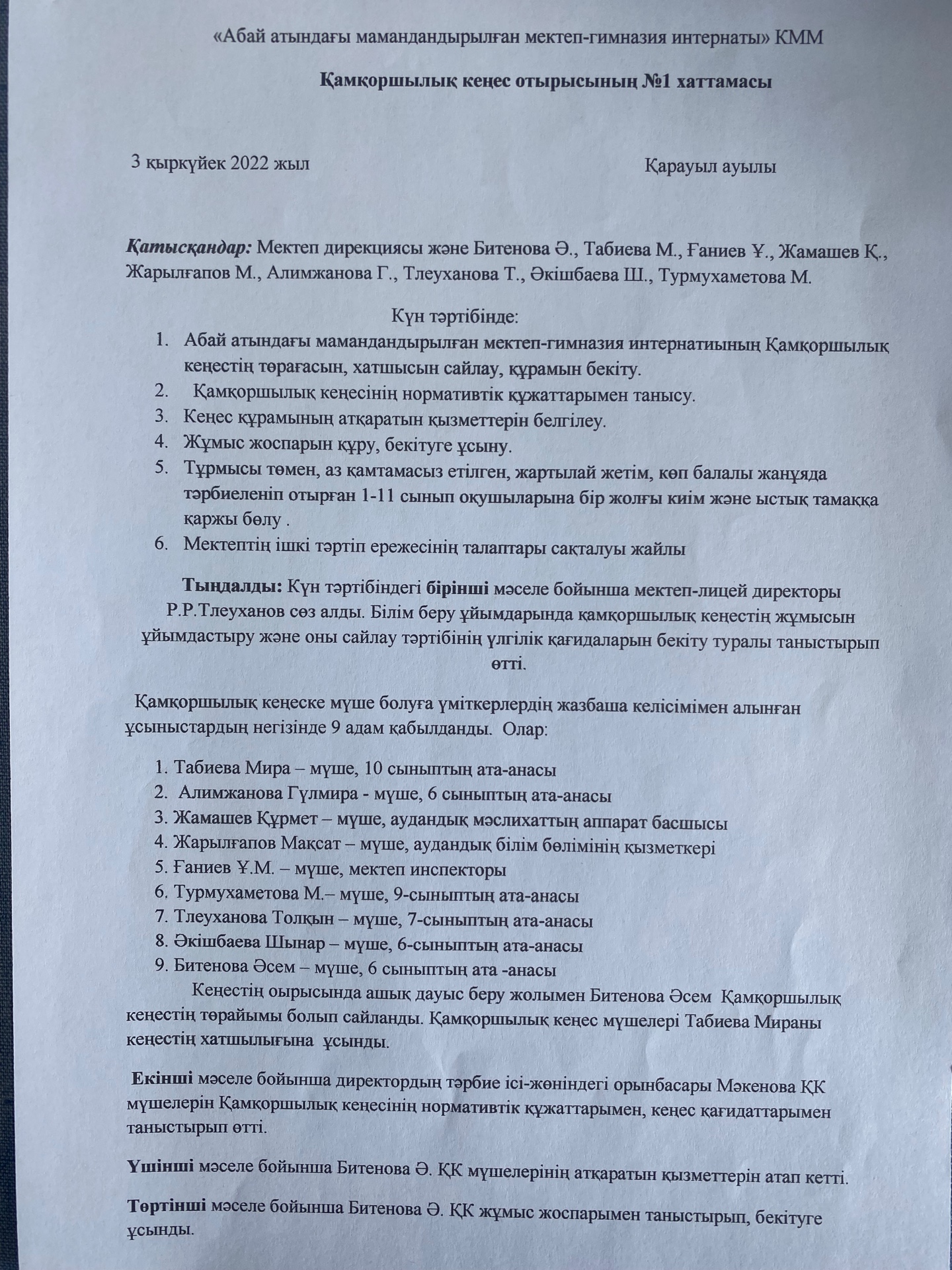 Қамқоршылық кеңес отырысының №1 хаттамасы » «Абай атындағы мамандандырылған мектеп-гимназия интернаты»